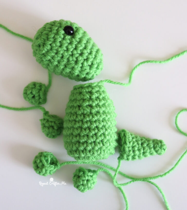 Place the head on top of the body, slightly tilted forward so the dino has that cute, rounded look.