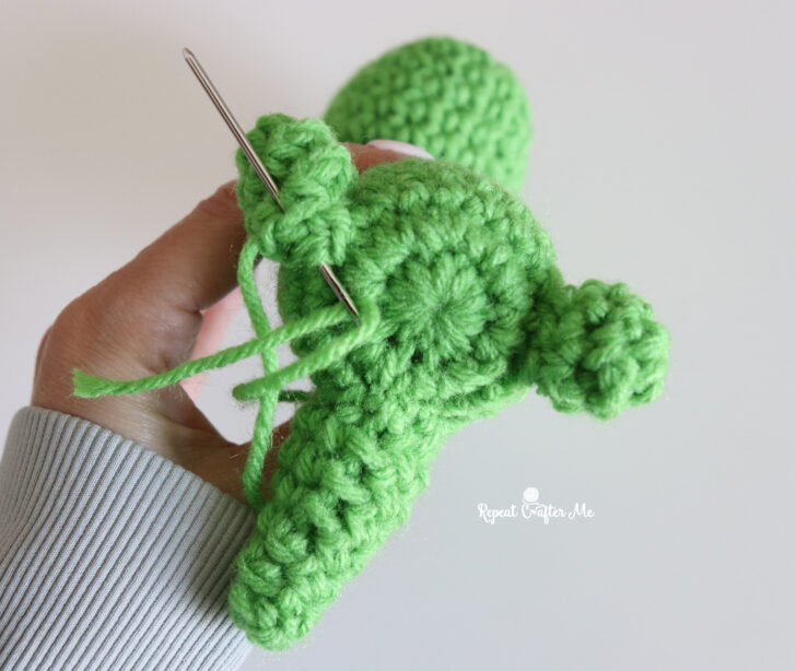 Each piece uses simple stitches, and working them separately actually gives the dino a sturdy structure, helps it hold that classic Squish-a-saurus shape, makes it extra cute and dimensional.