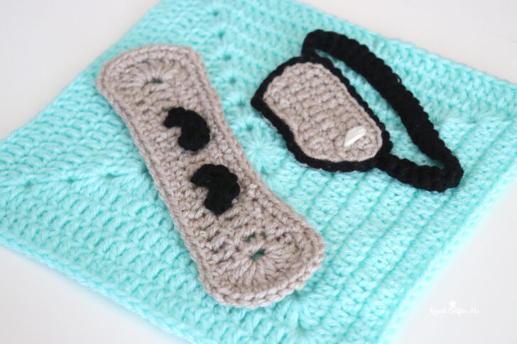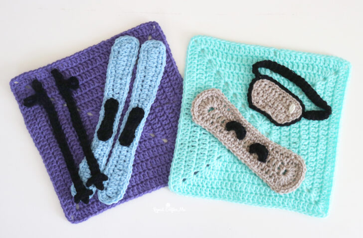Attach your snowboard and goggles to your 10 x 10 crochet square (I’m using my Easy Double Crochet Solid Granny Square).