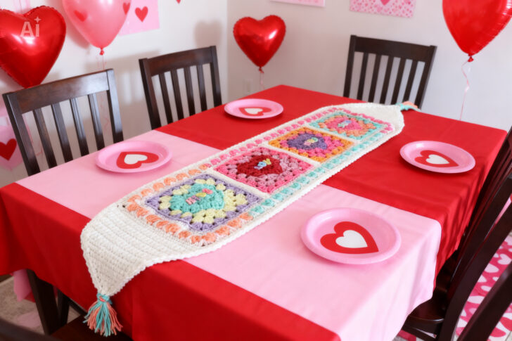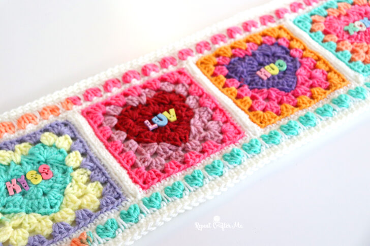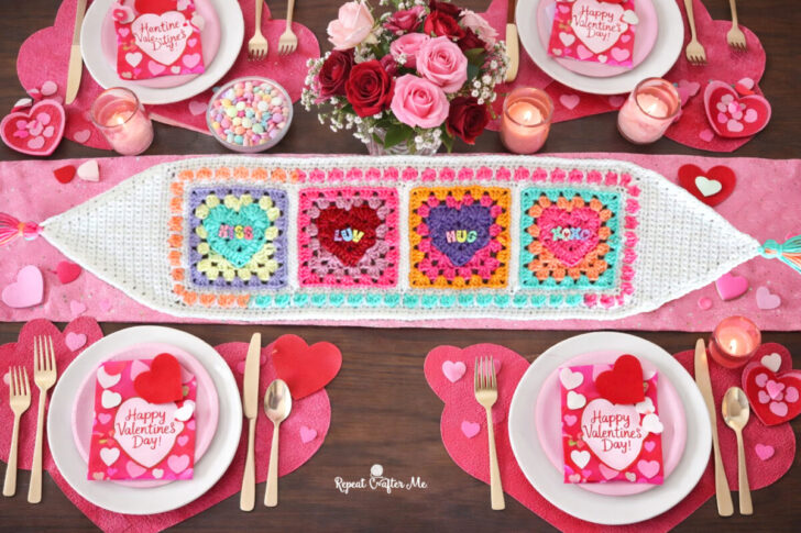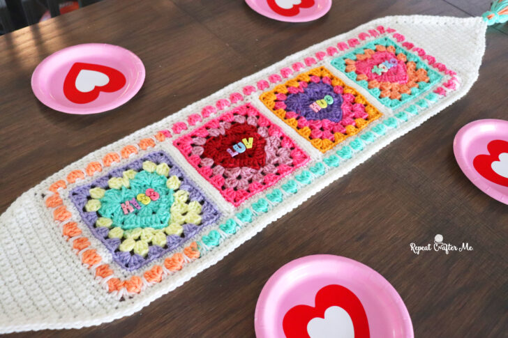 And that’s it — your Conversation Heart Crochet Table Runner is complete!