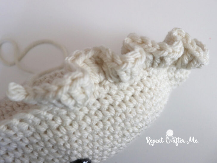 That ruffled, pinched edge along the top is made with simple double crochet stitches with no complicated shaping required!