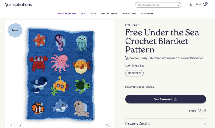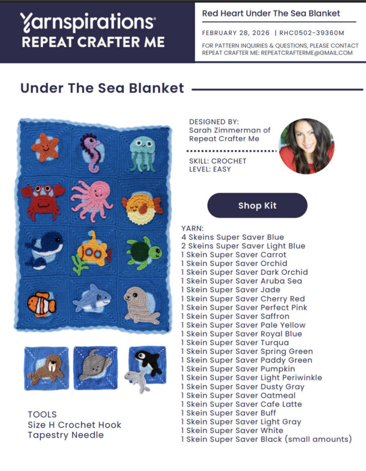 As part of the Under the Sea Sale theme at Yarnspirations, the entire blanket pattern is now available as a FREE all-in-one downloadable PDF.