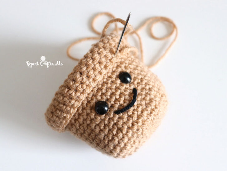 Pause here to add safety eyes and a smile (optional) between rounds 12–13.